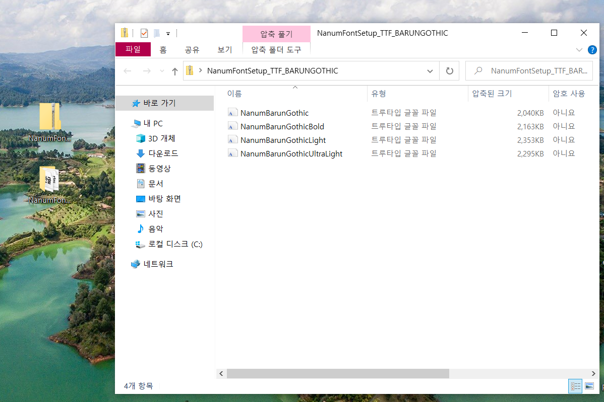 - 압축을 바탕화면에 풀면 찾기 편합니다.
