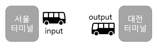 터미널은 우리 주변에 흔히 볼수 있는 버스터미널이라고 생각하면 쉽습니다. 예로 서울과 대전이라는 버스터미널이 있다고 가정 했을때 각각의 버스터미널에는 버스가 존재 합니다. 여기서 터미널은 버스터미널과 같은 역활을 하고 있다고 보면 됩니다.